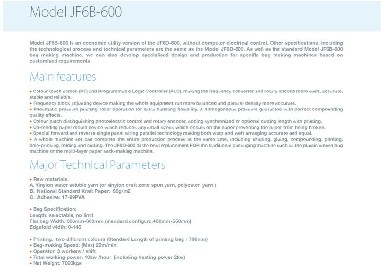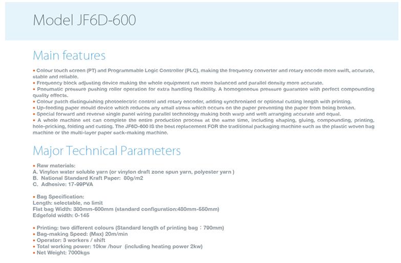 Paper yarn bag/sack making machine is a kind of environmental one, which are easy to operate and to maintain, they require low electricity voltage to use and have excellent safety features. The bag making machines are not labor intensive and do not need large amounts of space. Bag making and printing could be finished at the same process and the bag speed 22m/min. The range of industrial bags produced by this machine, could be used in many different industries such as chemical, mineral and agricultural. The range of bags also offer a variety of qualities such as strength, temperature resistance, moisture proof, preservation qualities, anti-aging, anti-slip stacking and recycle.